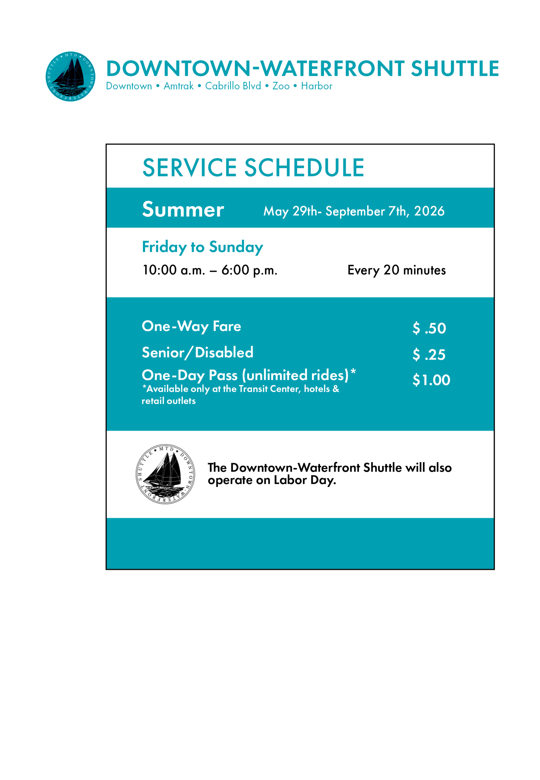 Fare for the Downtown-Waterfront Shuttle is as follows: