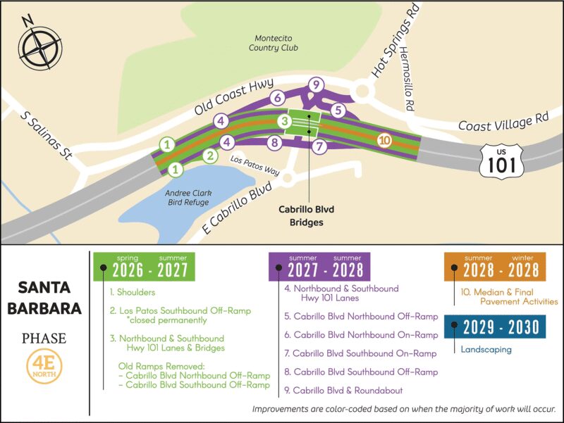 SERVICE ALERT: Due to upcoming work related to the 101 HOV Santa Barbara North project, the Cabrillo Boulevard Undercrossing under Hwy 101 will be inaccessible between the hours of 9:00 p.m. and 6:00 a.m. on certain days—starting with April 12ththrough 16th.
